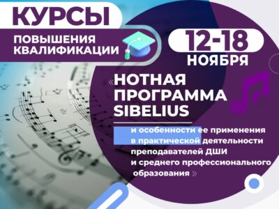В период с 12 ноября по 18 ноября 2025 г. для преподавателей ДШИ, преподавателей средних профессиональных образовательных организаций в сфере культуры и искусства пройдут курсы «Нотная программа Sibelius и особенности ее