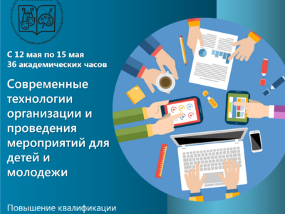 С 12 по 15 мая состоятся курсы повышения квалификации «Современные технологии организации и проведения мероприятий для детей и молодежи»