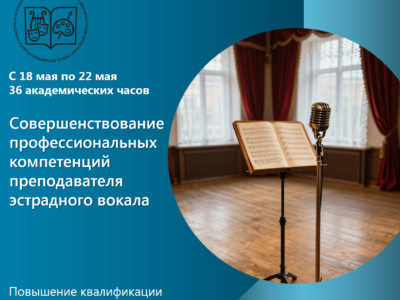 С 6 апреля по 16 апреля 2026 г. преподаватели детских школ искусств и среднего профессионального образования прошли обучение по программе повышения квалификации «Методика начального этапа обучения игре на фортепиано. Авторский