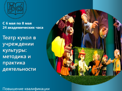 С 6 по 8 мая 2026 г. пройдут курсы повышения квалификации по программе «Театр кукол в учреждении культуры: методика и практика деятельности»