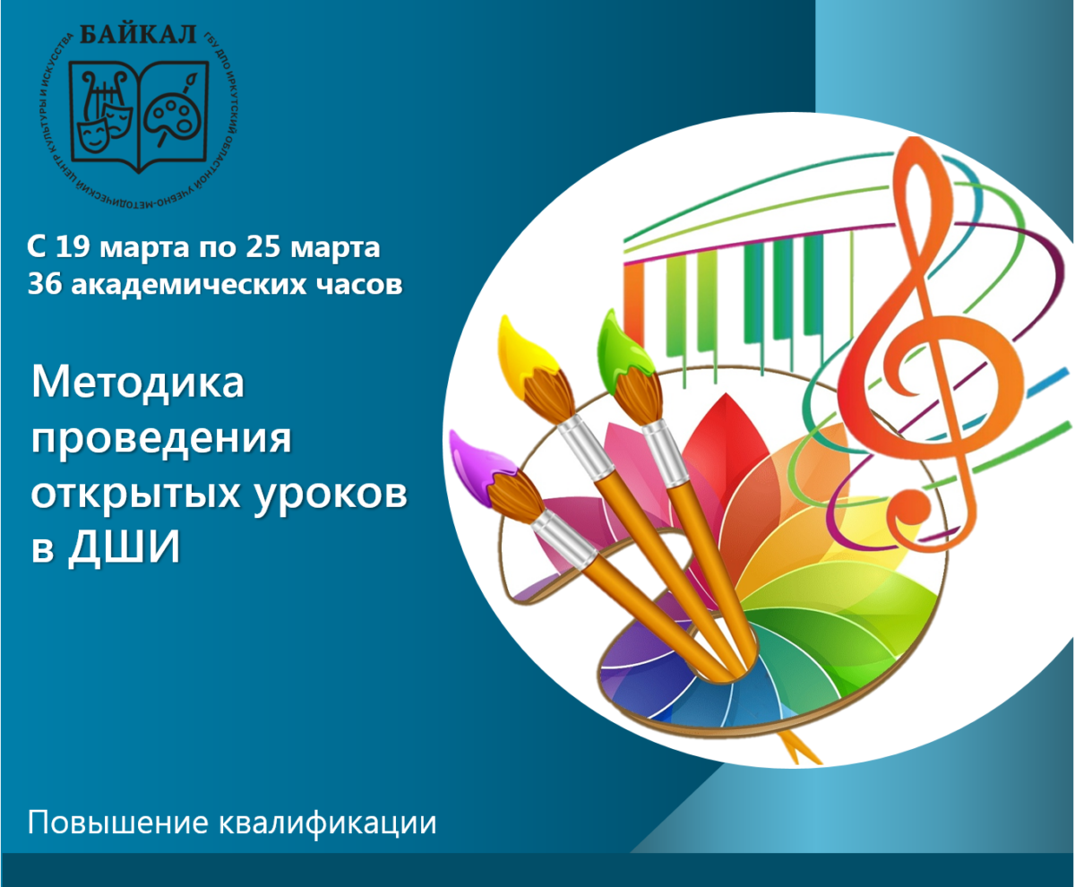 Приглашаем специалистов пройти обучение по дополнительной профессиональной программе повышения квалификации «Методика проведения открытых уроков в ДШИ» (36 академических часов).