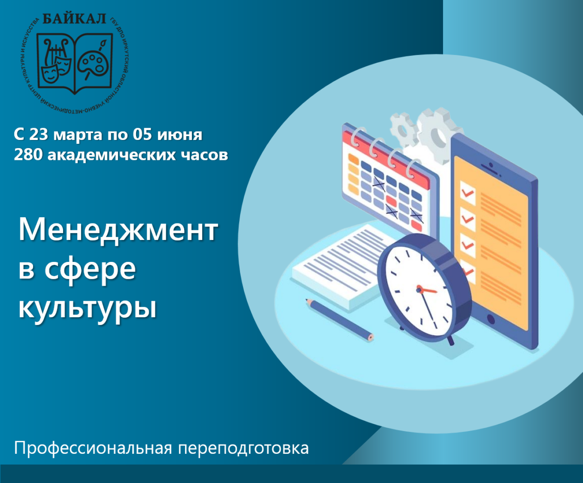 Приглашаем специалистов пройти обучение по дополнительной профессиональной программе профессиональной переподготовки «Менеджмент в сфере культуры» (трудоемкость программы 280 академических часов).