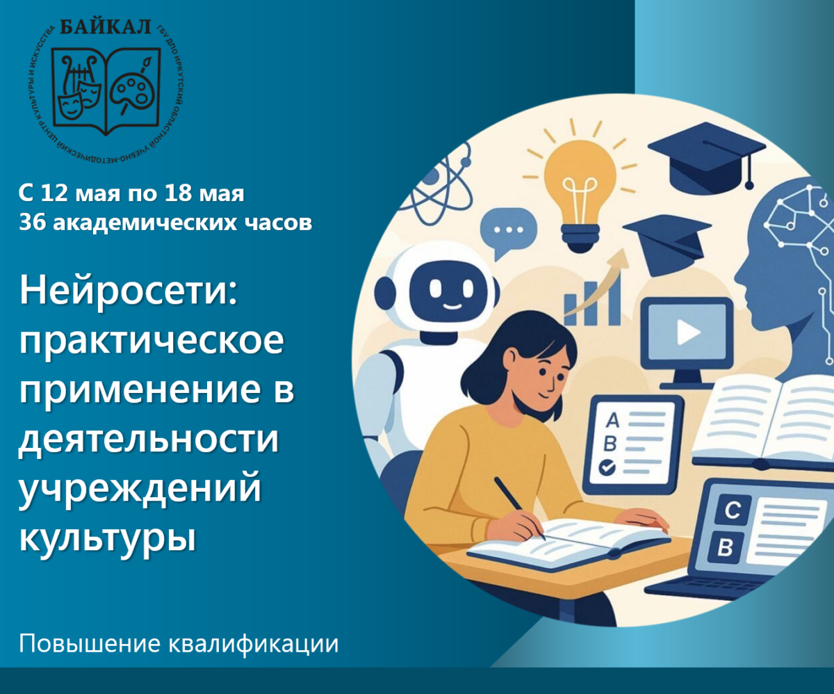 Приглашаем специалистов пройти обучение по дополнительной профессиональной программе повышения квалификации «Нейросети: практическое применение в деятельности учреждений культуры» (36 академических часа).