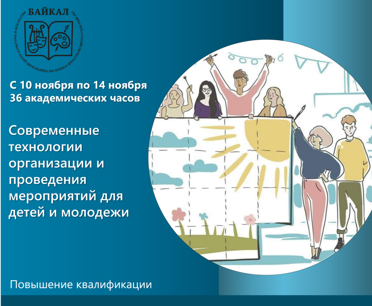 Приглашаем специалистов Вашего учреждения пройти обучение по дополнительной профессиональной программе повышения квалификации «Современные технологии организации и проведения мероприятий для детей и молодежи» (36 академических часов).