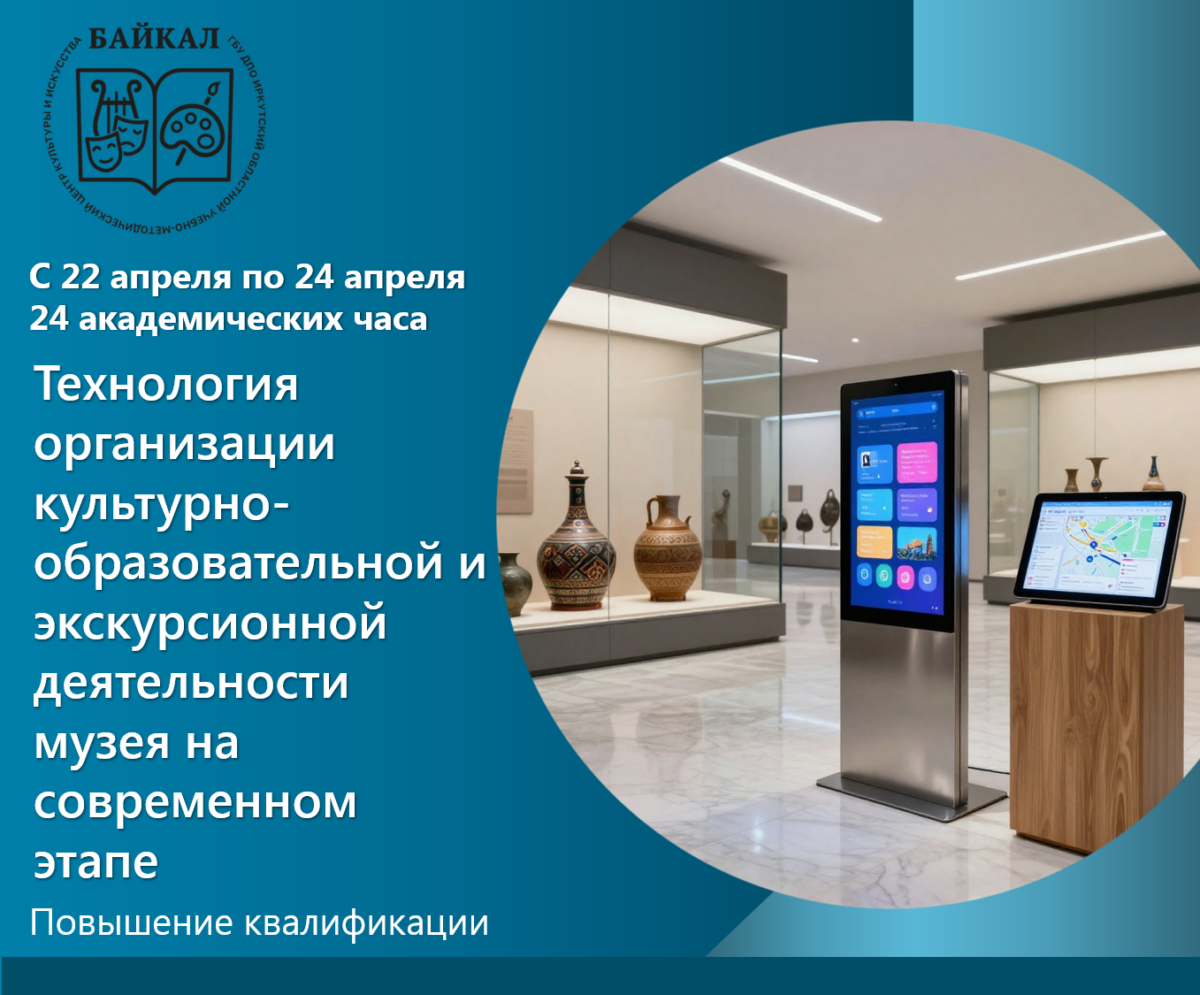 Приглашаем специалистов пройти обучение по дополнительной профессиональной программе повышения квалификации «Технология организации культурно-образовательной и экскурсионной деятельности музея на современном этапе» (24 академических часа).