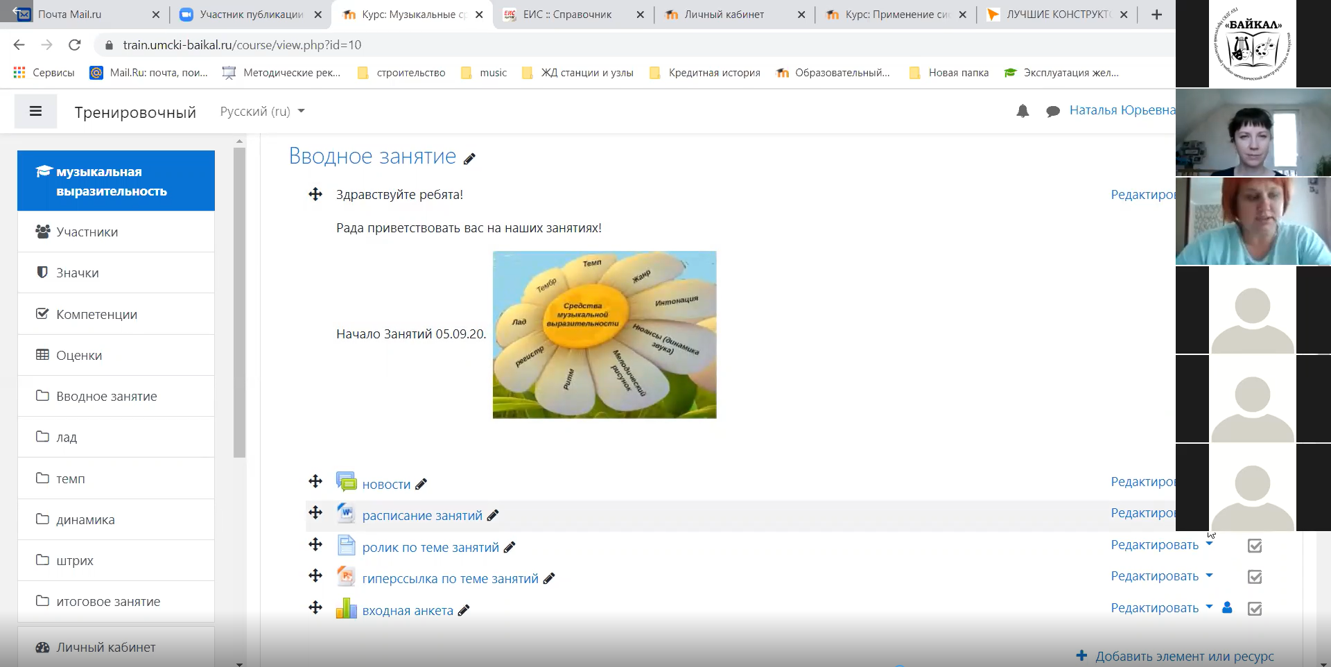 С 21 по 29 сентября 2020 года в УМЦ «Байкал» прошли курсы повышения квалификации «Дистанционные образовательные технологии в педагогической деятельности преподавателя образовательного учреждения культуры и искусства»