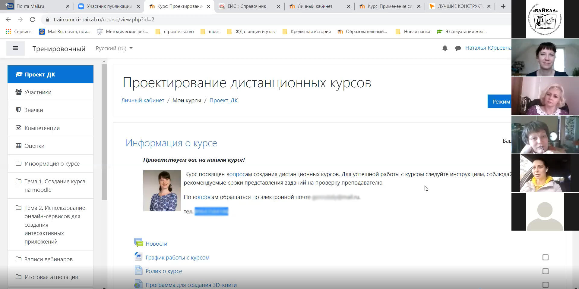 В завершение курса слушатели, используя различные элементы Moodle, наполнили одну тему электронного образовательного ресурса по своему предмету и защитили свой курс перед преподавателем.