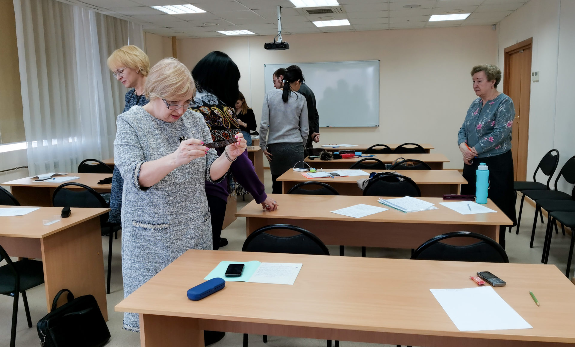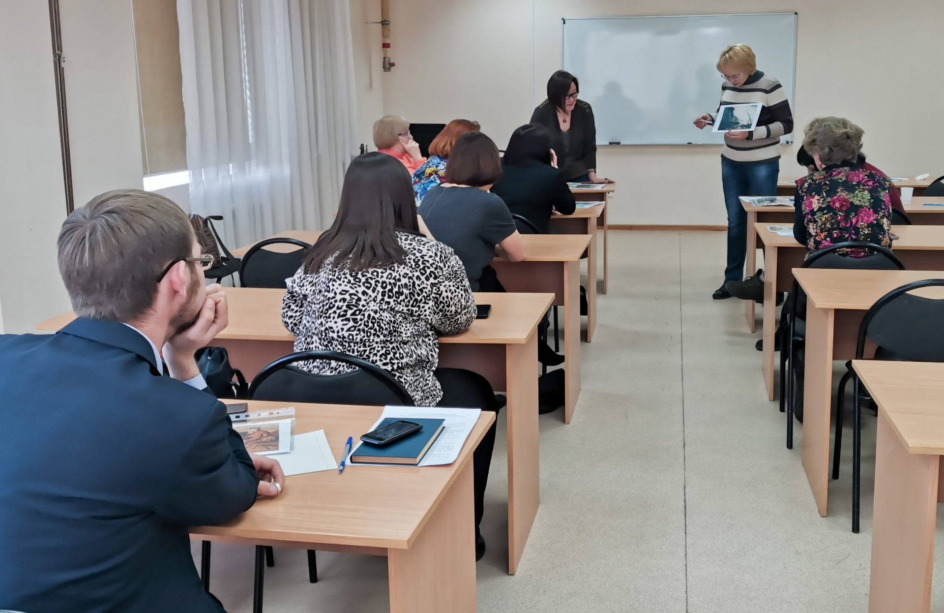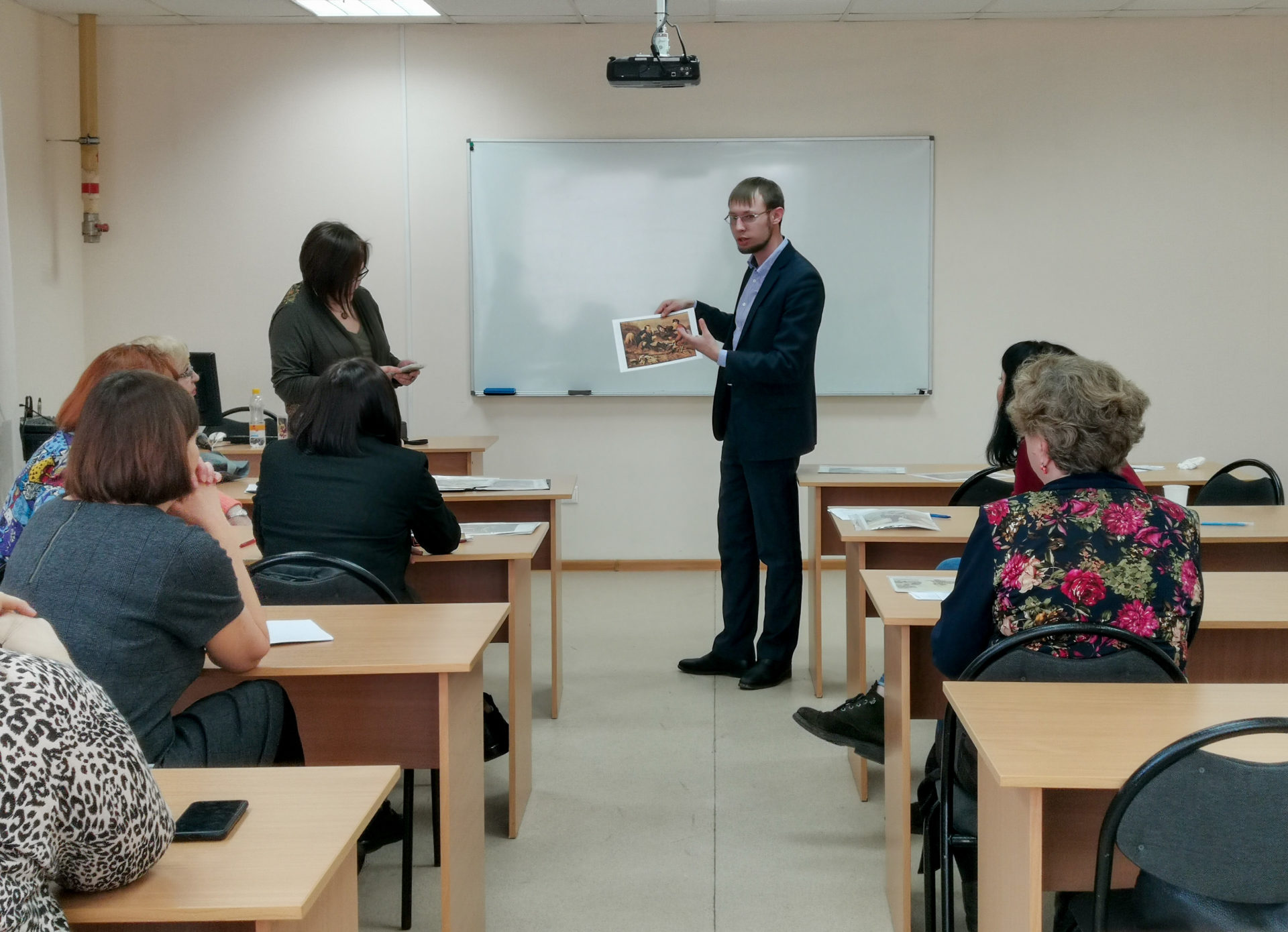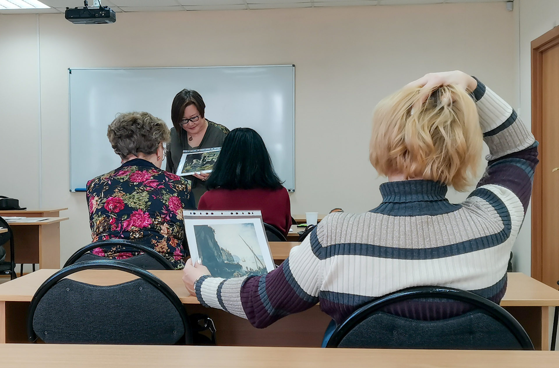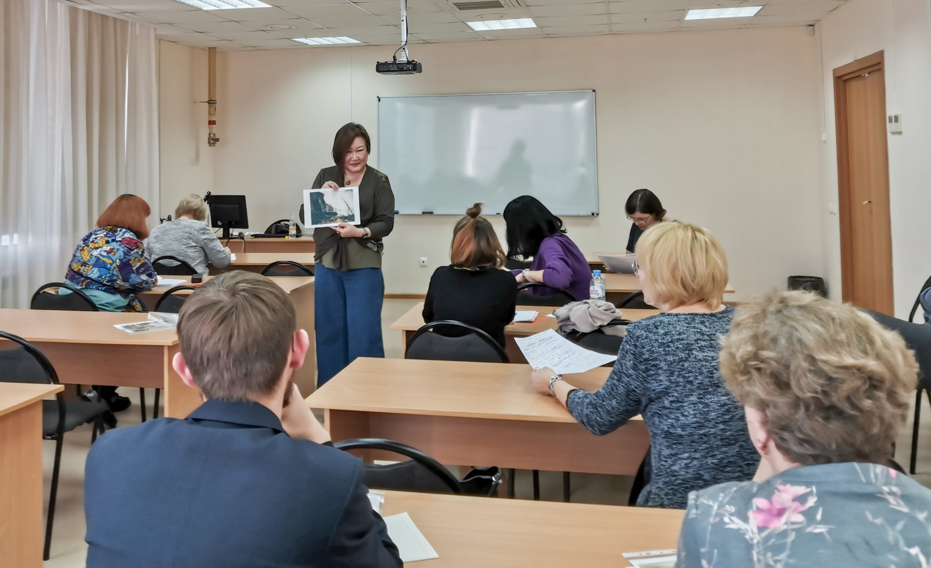 Во время практических занятий слушатели смогли описать художественные произведения с точки зрения феноменологии – безоценочно, с минимальными искажениями или толкованиями. Наталья Владимировна Аникьева апробировала с участниками курса технологию работы в группах по методу «кроссенс».