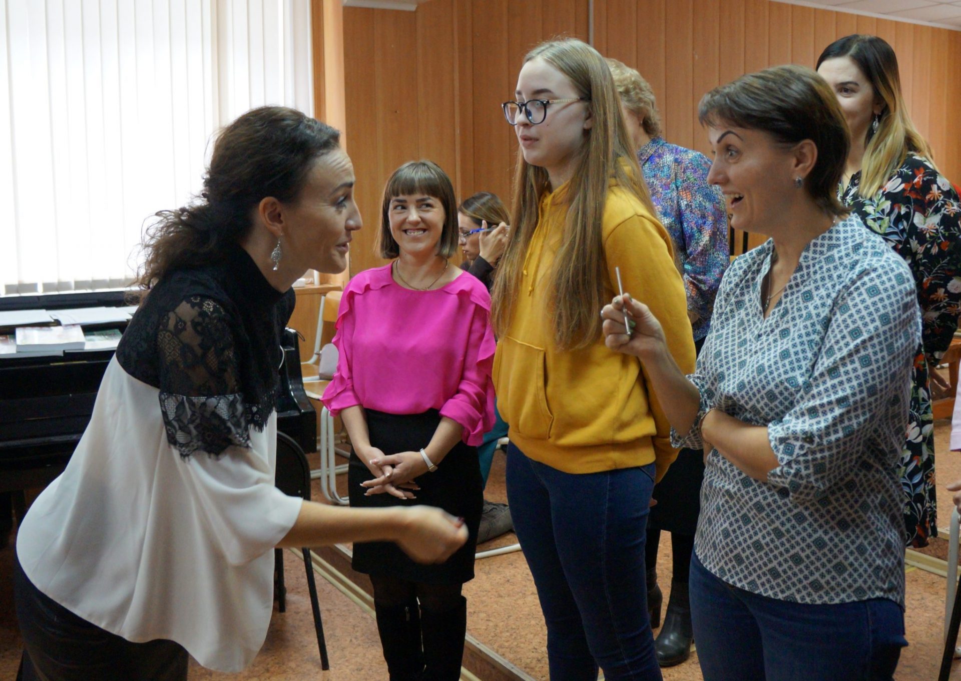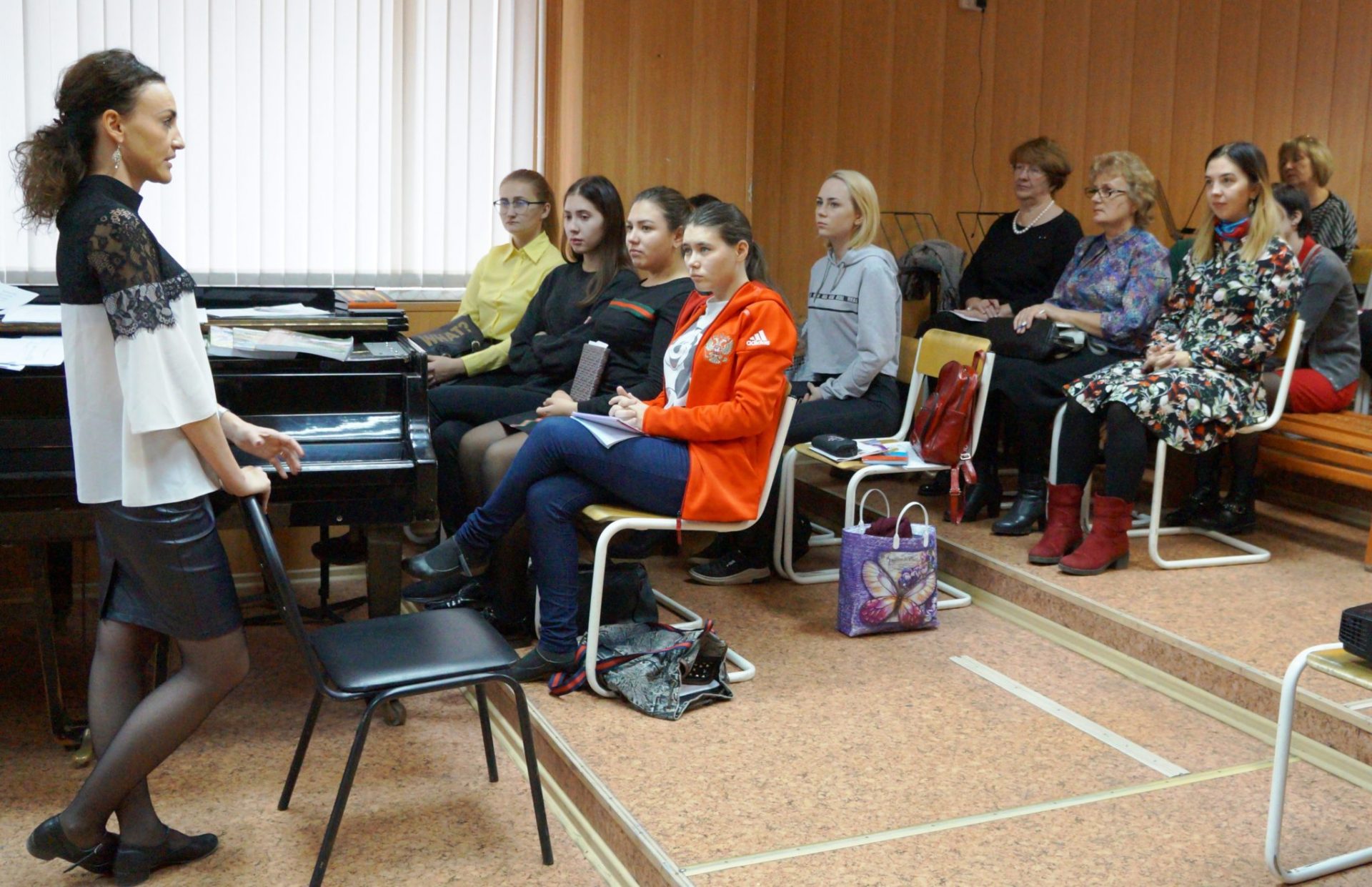 Приглашённый преподаватель – Бушуйкина Татьяна Викторовна, старший преподаватель кафедры русского народного певческого искусства ФГБОУ ВО «Московский государственный институт культуры», солистка ансамбля Союза казаков России «Живая Русь», хормейстер ансамбля «Россияне» Московского государственного музыкального театра фольклора «Русская песня» под руководством Бабкиной Н.Г. на практических примерах представила особенности вокальной работы в народно-певческом коллективе, а также особенности освоения региональных певческих стилей.