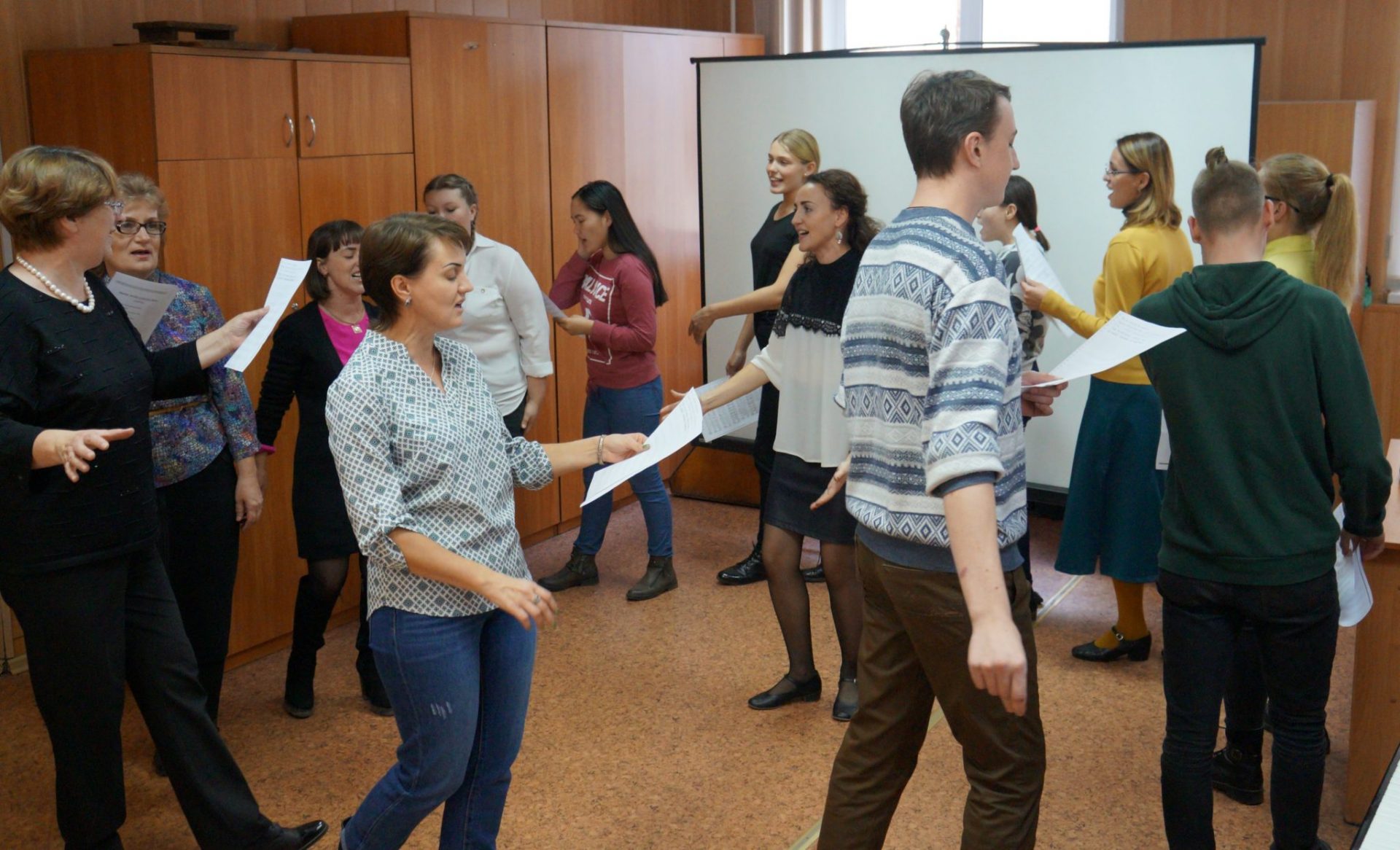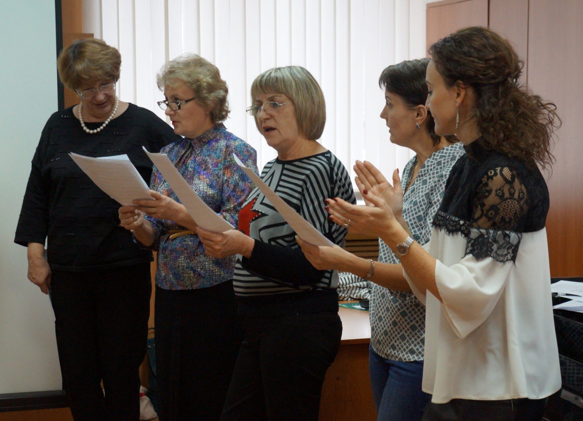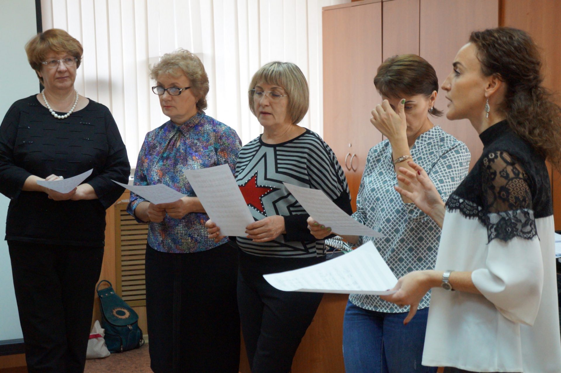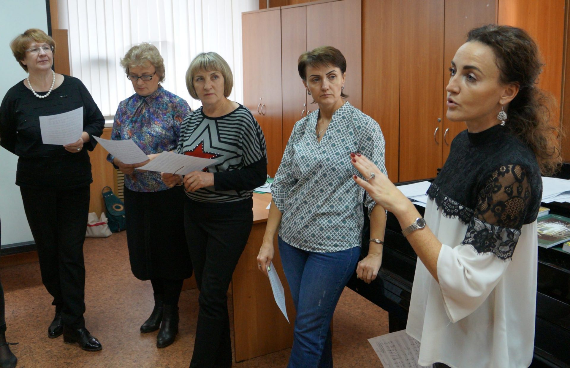 Были проведены практические занятия по разучиванию песенных образцов Нижегородской, Калужской, Брянской, Белгородской, Липецкой, Ростовской областей и затронуты актуальные вопросы формирования репертуара в народно-певческом коллективе.