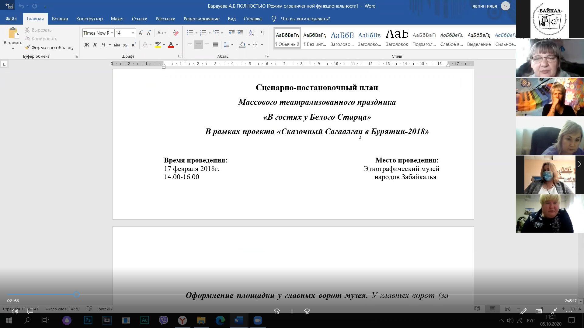 Слушатели в онлайн-режиме обсудили с преподавателями свои идеи для сценариев к празднику День Победы, а в качестве итоговой аттестаций подготовили cценарно-постановочный план мероприятия для взрослой аудитории. Среди работ слушателей были сценарные планы таких праздников, как Масленица, День матери, День Победы, Новый год, День пожилого человека, День учителя, праздник русского платка. Некоторые слушатели посветили свои работы чайной вечеринке, шахматным соревнованиям, дню села и другим мероприятиям.