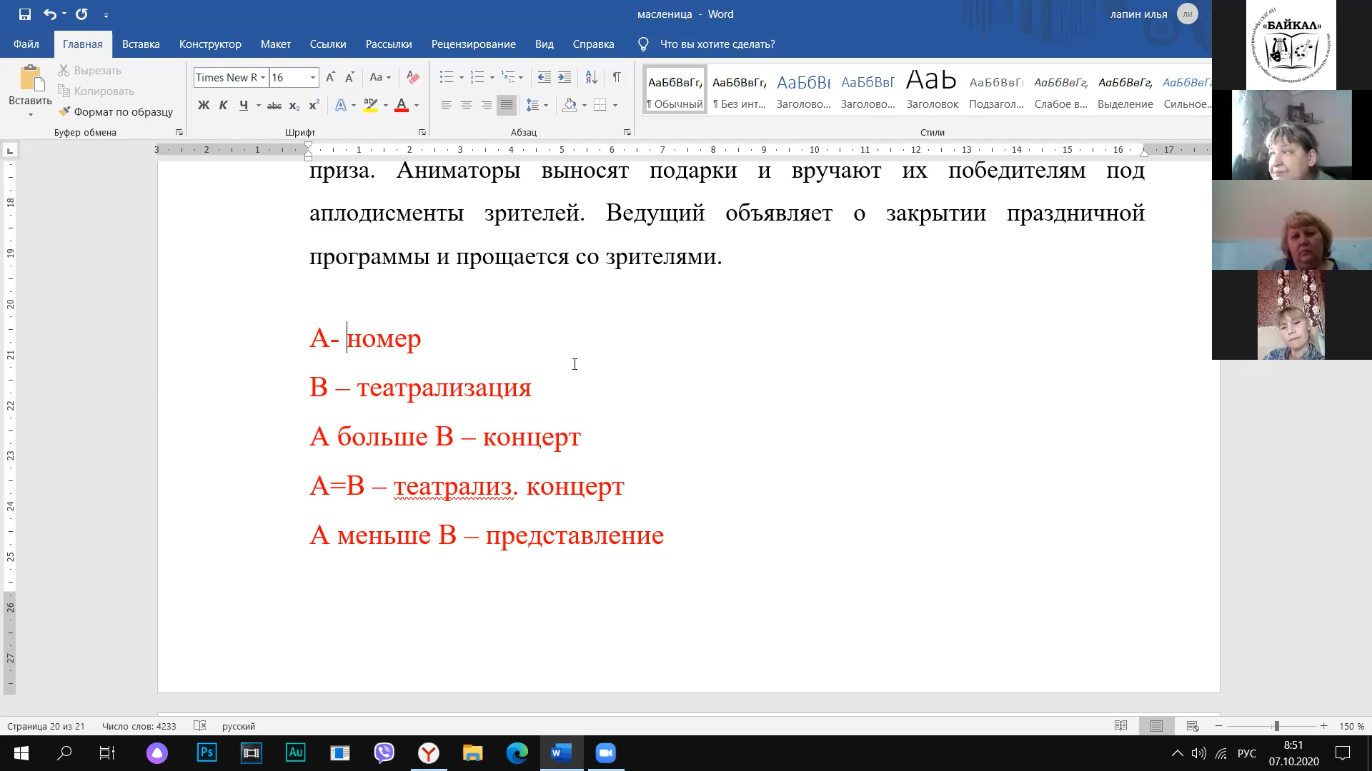 - создание сценария для «онлайн» праздничного мероприятия, алгоритм подготовки и написания;