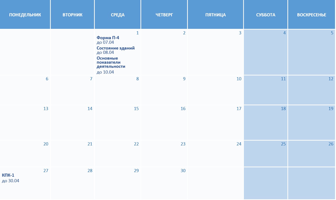 Календарь мониторингов в АИС Барс на апрель 2026 года
