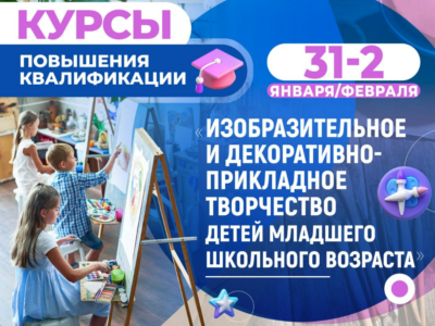 С 31 января по 2 февраля пройдут курсы повышения квалификации по дополнительной профессиональной программе «Изобразительное и декоративно-прикладное творчество детей младшего школьного возраста»