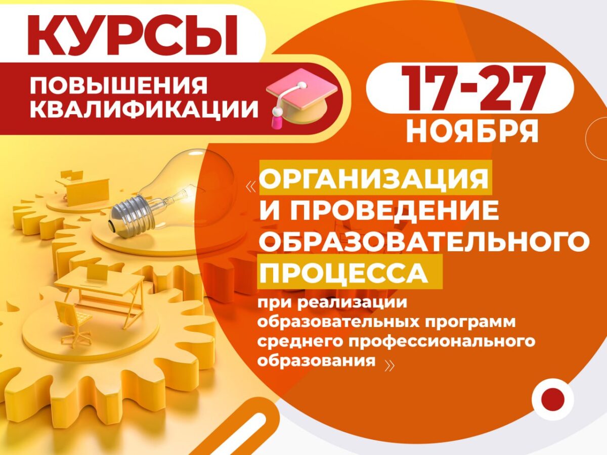 Открыт прием заявок на курсы повышения квалификации по дополнительной профессиональной программе «Организация и проведение образовательного процесса при реализации образовательных программ среднего профессионального образования»