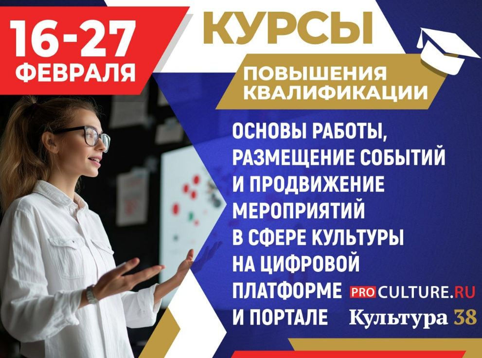 Приглашаем руководителей и специалистов учреждений культуры пройти обучение по программе «Основы работы, размещение событий и продвижение мероприятий в сфере культуры на цифровой платформе PRO.Культура.РФ и портале „Культура 38“».