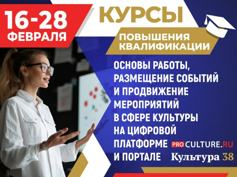 Приглашаем руководителей и специалистов учреждений культуры пройти обучение по программе «Основы работы, размещение событий и продвижение мероприятий в сфере культуры на цифровой платформе PRO.Культура.РФ и портале „Культура 38“».