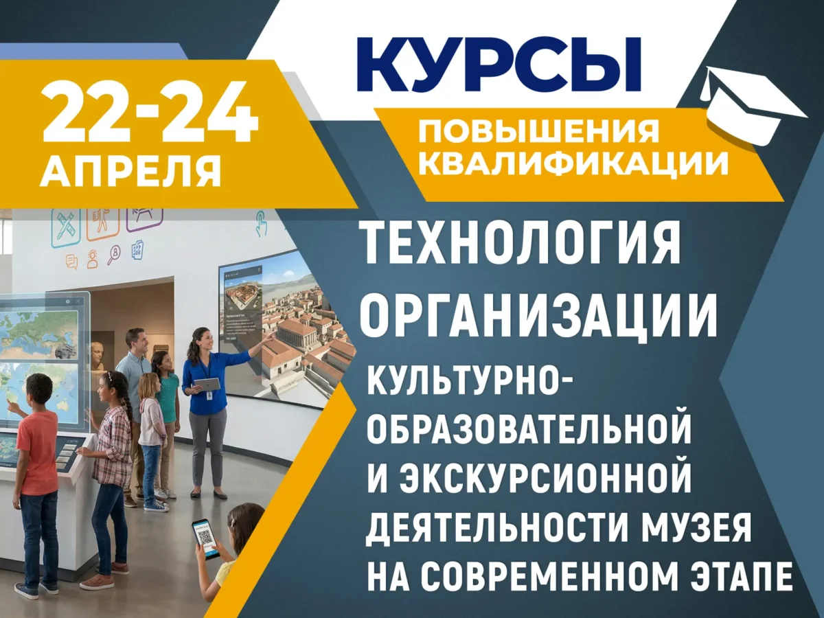 Приглашаем сотрудников музеев и учреждений музейного типа принять участие в обучении по дополнительной профессиональной программе повышения квалификации «Технология организации культурно-образовательной и экскурсионной деятельности музея на современном этапе».